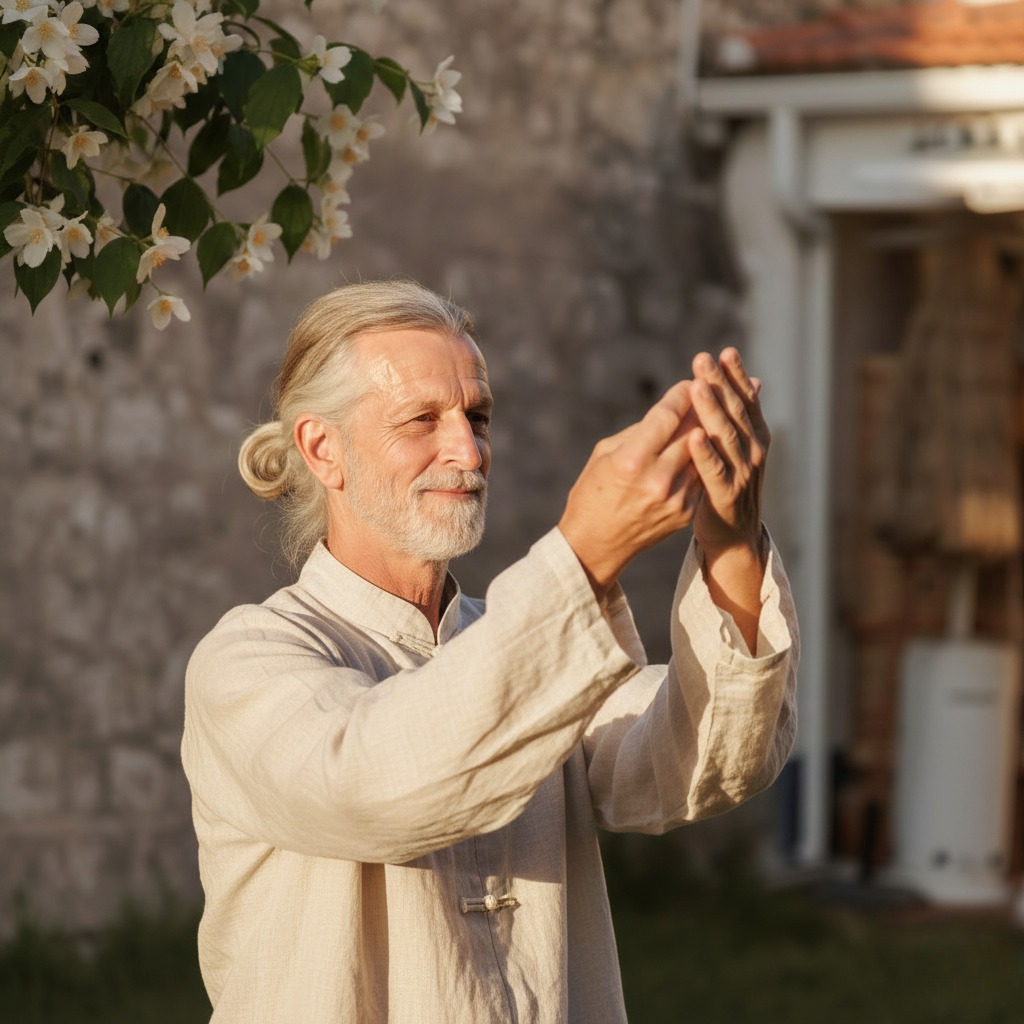 Juan Yusta conduz as aulas de Tai-Chi na Quinta do Baco como uma verdadeira meditação em movimento, um ensinamento sobre enraizar, abrandar e viver com consciência. Com uma sólida formação em artes marciais, o Juan integra na sua abordagem práticas profundas de desenvolvimento interior e autoconhecimento, tais como:
